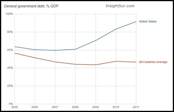 Even those averages are less than the current debt levels in the United States, which are 90% of GDP.